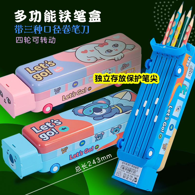商品名称:流沙新款铁笔盒小学生多功能文具盒可爱创意铅笔盒大容量批发代发