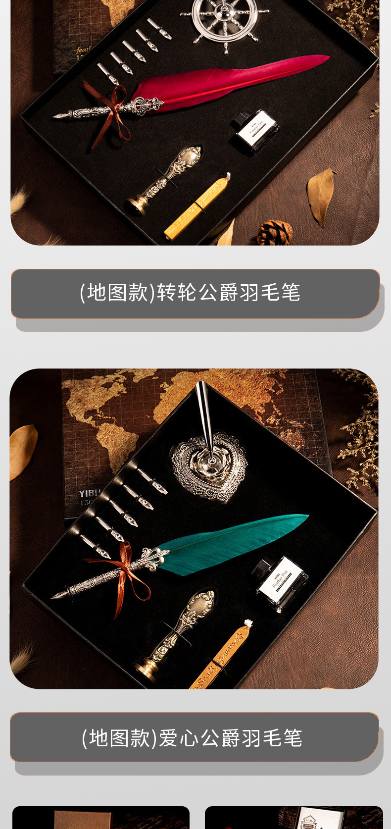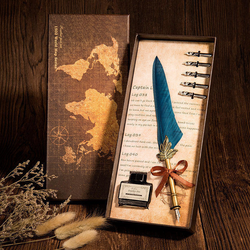 > 欧式复古羽毛笔礼盒套装带墨水洒金蘸水羽毛笔创意书法学生沾水笔