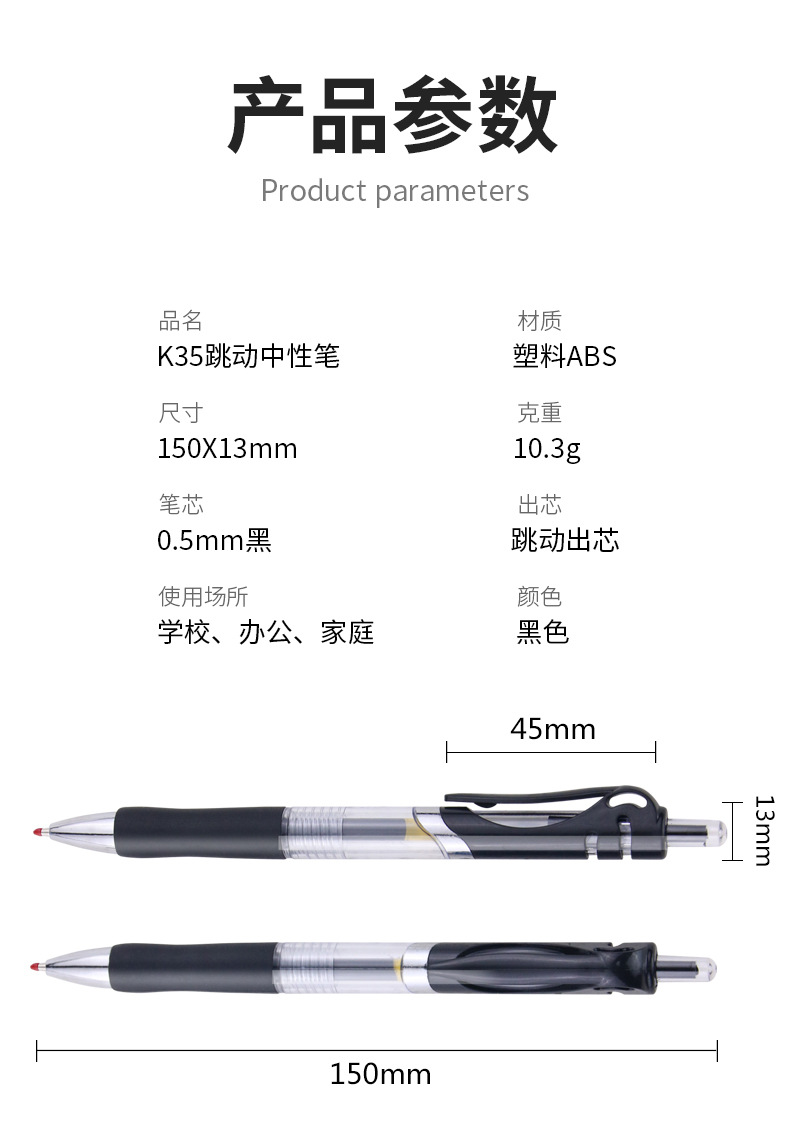 商品名称:K35按动中性笔订做印刷批发蓝黑墨蓝广告笔